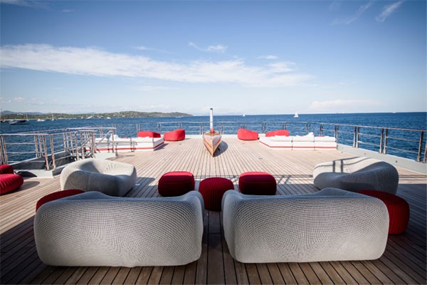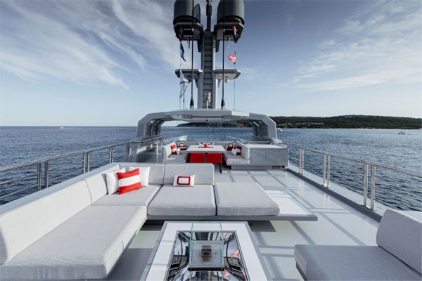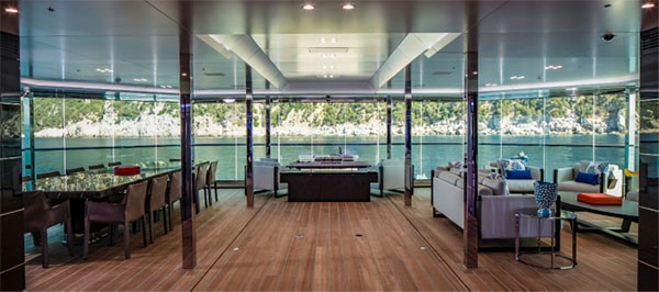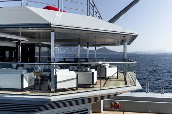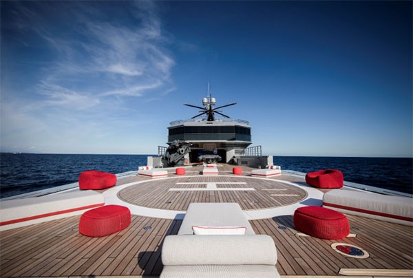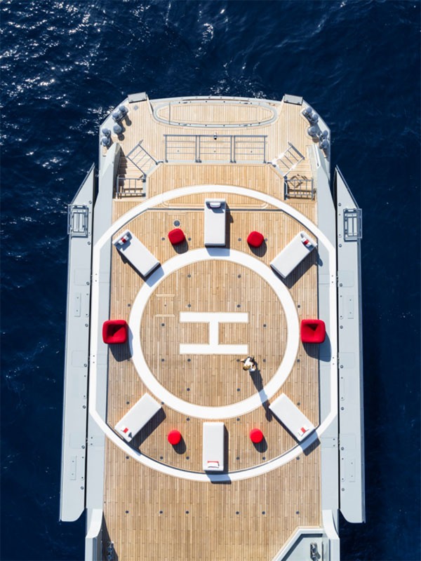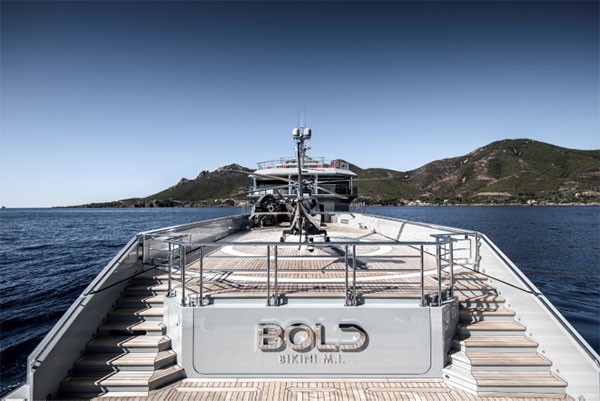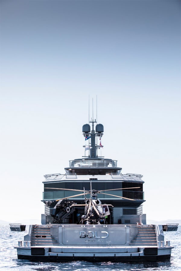 船尾主甲板则是BOLD的另一重点,这里装置了可折叠的扶手和液压式折叠舷墙,其中包括了认可直升机停机坪,适用于AW109等直升机。能负重8吨,伸延到15米高的船尾甲板起重机可以轻松把小艇、大型玩具等放下水或取回船上。