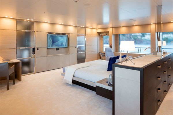 同时出于实用性和功能性的综合考量,BOLD一共有八个客舱,包括主人套房,三个贵宾舱和四个客舱。主人套房除了睡房和私人大厅外,还有“他和她”的套间。同时BOLD充分利用外部和内部玻璃,将游艇的开放式风格延伸至主人套房。