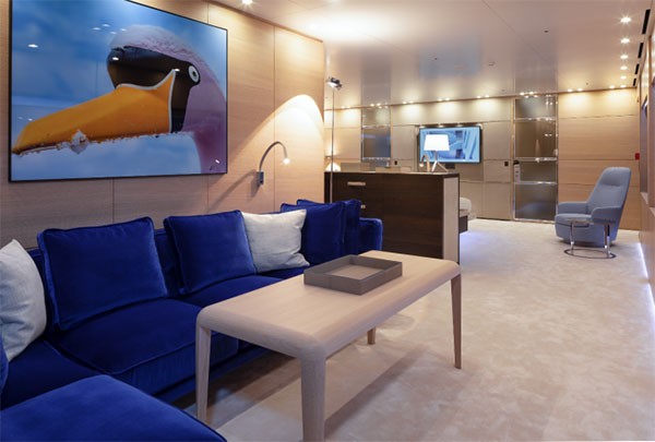 BOLD的设计亮点还包括一处大型冬季花园——通过环绕式滑动玻璃和空调,即便是航行到寒冷地带,花园里仍会春意盎然,加上宽敞的内外部空间,可用于举办室内外不同规模的聚会。在最上层的娱乐甲板,BOLD还打造了私密的日光浴平台。