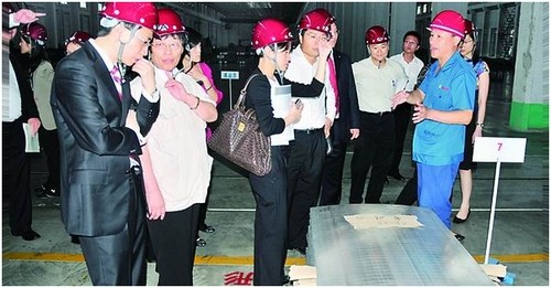 首先,由董事长兼总裁刘忠田先生致欢迎辞,路长青副总裁翔实介绍了公司的生产和发展情况。之后在董事长等领导的陪同下,考察团先后参观了集团展示厅、铝原料堆放区、特材熔铸厂及铝加工厂、研发中心、出口型材包装车间等单位,给投资者留下了极其深刻的印象。