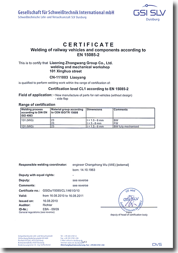 EN15085是一套针对轨道车辆和车辆部件的焊接认证体系,在交通轨道行业广泛流行。 标准名称:轨道应用—轨道车辆和车辆部件的焊接认证体系(Railway applications-Welding of railway vehicles and components)。主要包括对产品的设计要求、生产要求、质量要求、检查、试验及鉴定证明等多项审核内容。该标准适用于铁路车辆及其部件的制造和维护中金属材料(如铝合金、钢材、铜、镁等)的焊接,在欧洲有30多个国家执行该标准,因此通过此类标准体系的认证是我国轨道车辆和车辆部件企业出口到欧盟国家必备的条件。
